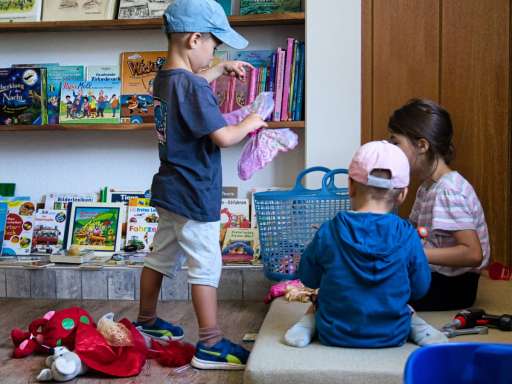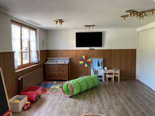 Das Kinderzimmer im 1. Stock neben dem grossen Hirschensaal ist den kleinen Gästen gewidmet. Wir stellen den Kindern viel Spielzeug zur Verfügung. Von der Kinderküche über eine Holzeisenbahn bis hin zu einer tollen Bibliothek mit ganz vielen Büchern stehen Spielsachen bereit, damit sie sich auch bei schlechtem Wetter oder abends gut unterhalten.