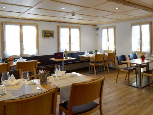 Unsere Gaststube ist in 3 Bereiche eingeteilt damit alle Gäste sich wohl fühlen können und es von der Akkustik her nicht zu laut wird. Der Buffetbereich mit unserem prominenten Hirschen auf dem Emmentaler Panorama an der Wand sowie dem Stammtisch in der Nähe der Theke bilden das Zentrum unserer ganzen Gaststube. Der Restaurantbereich gleich hinter der Theke wird vor allem während der Mittagszeit und für unsere Hotelgäste genutzt. Im Nebenraum befindet sich das etwas ruhigere 'Stübli' mit Tischen für bis zu 30 Personen sowie der schönen Wand aus Altholz, welche mit viel Liebe restauriert wurde.